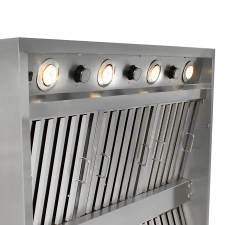 The extra deep and high capacity design ensures the Blaze outdoor vent hood can handle any amount of grilling day or night. Two, individually controlled internal 1000 CFM blowers with four-speed settings manage the smoke intake. At an industry-leading 2000 CFM, Blaze vent hoods are perfect for the customer who wants to do the best they can to ensure their outdoor living space is as clear of smoke as possible. The 36-inch depth allows the hood to better cover the grill and capture more grease and smoke. Most vent hoods require an extra piece to extend the hood further to the front of the grill, while the Blaze vent hood is stronger and deeper to cover that area. The same powerful design also allows you to install the vent hood at a higher position above the cooking surface to allow more headroom. The motors can be configured to vent horizontally out the back of the hood or vertically, which allows you to install the vent hood to suit your specific needs. Four individual lights can be adjusted to four brightness settings and, combined with the depth, help better illuminate the cooking surface compared to a standard depth vent hood. Six, commercial-style baffle filters help prevent grease from entering the ductwork and are dishwasher safe for easy cleaning. Constructed of 304-grade stainless steel, this vent hood with a rounded canopy will withstand the outdoor elements and match all components of your outdoor kitchen. The extreme performance and sleek design is the perfect complement for almost any outdoor BBQ grill.