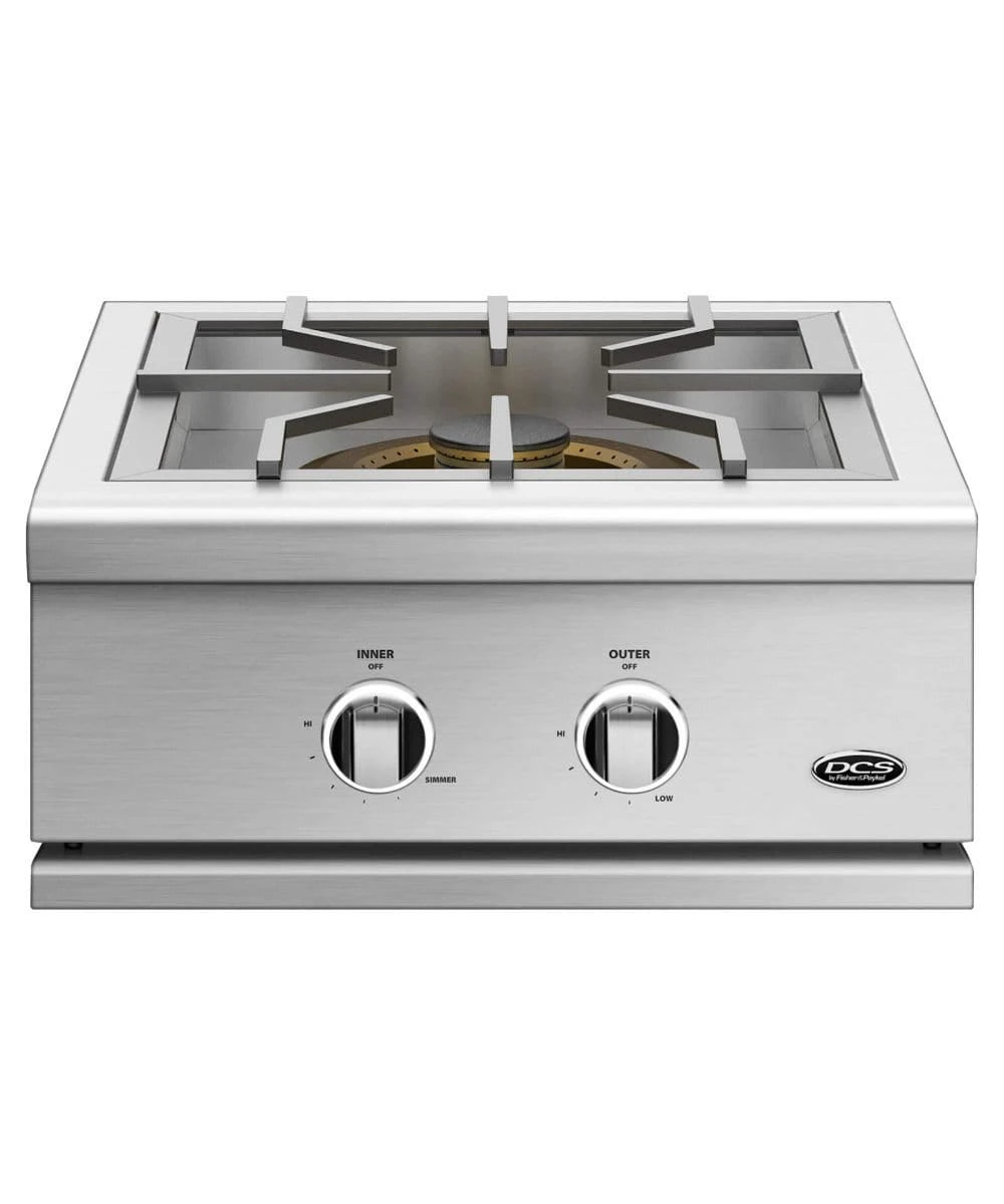 The DCS Power Burner is constructed of solid stainless steel. Insulated Jackets are recommended for combustible island installation. DCS Insulated Jackets must have bottom support.