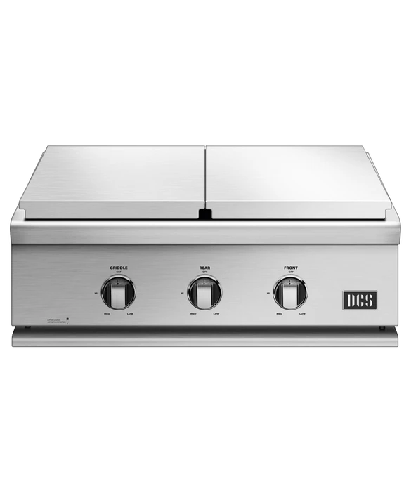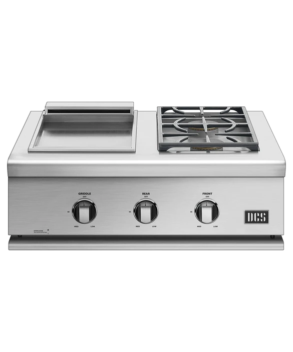 FOR MORE DETAILS. With the Dual Side Burner/Griddle unit of the Liberty Collection you have the ability to prepare delicious dishes that are not customarily cooked outside. Add pancakes and bacon to your outdoor breakfast menu with ease using the large griddle surface. This unit even allows you to effortlessly host an omelet bar in your outdoor kitchen. Available in Natural or LP Gas. Cart sold separately. Model Number: BFGC-30BGD-N/L
