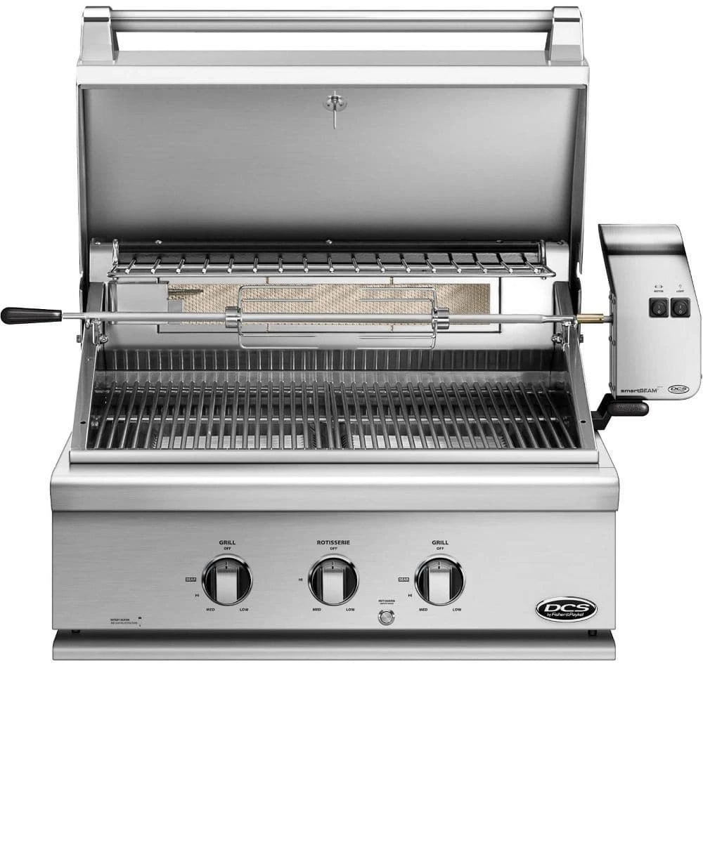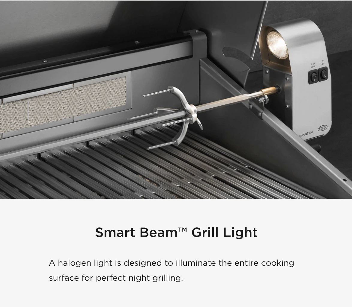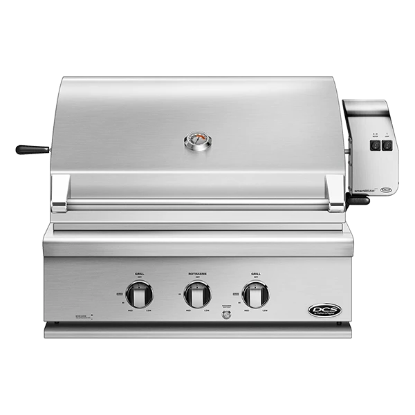 DCS grills are engineered for people who want to cook just like a professional chef in their own home. This 30-inch propane gas built-in grill features two 25,000 BTU U-shaped stainless steel burners that push an impressive total of 50,000 BTUs of cooking power. Each burner features a heat shield that directs heat upwards, maximizing grilling efficiency. DCS grills offer Ceramic Radiant Technology, which is a layer of ceramic rods placed between the burners and cooking grate. The rods provide intensely, yet even heat, ensuring the temperature is consistent across the entire grilling surface. This innovative feature allows you to sear meat to perfection anywhere on the cooking grid. This grill boasts a 553 square inch main cooking surface with a lasting stainless steel cooking grid. The 14,000 BTU infrared rear burner functions perfectly for slow roasting, and the included rotisserie kit can accommodate up to 50 lbs! The removable warming rack features a spacious 195 square inch, stainless steel warming area. DCS BH1 grills feature a wider range of cooking temperatures with valves that can be turned down to as low as 300 degrees at the grilling surface. The push and turn 9-volt battery ignition operates with the ease of an indoor range, and the 40-watt halogen Smart Beam BBQ grill light adds visibility while you grill. The temperature gauge allows you to control cooking temperatures. Every DCS grill is handcrafted and constructed entirely of heavy gauge type 304 stainless steel.