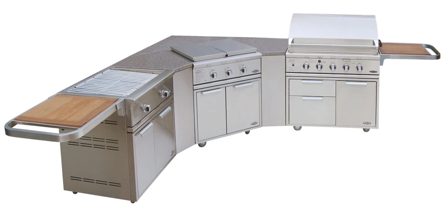 With the addition of Bend Units, your outdoor kitchen has endless design options. The Bend Unit offers additional storage space. And, when a solid surface is added, ample work, preparation and serve space is offered.