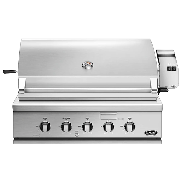 for more details. DCS grills are engineered for people who want to cook just like a professional chef in their own home. This 36-inch natural gas built-in grill features three 25,000 BTU U-shaped stainless steel burners that push an impressive total of 75,000 BTUs of cooking power. Each burner features a heat shield that directs heat upwards, maximizing grilling efficiency. DCS grills offer Ceramic Radiant Technology, which is a layer of ceramic rods placed between the burners and cooking grate. The rods provide intensely, yet even heat, ensuring the temperature is consistent across the entire grilling surface. This innovative feature allows you to sear meat to perfection anywhere on the cooking grid. This grill boasts a 638 square inch main cooking surface with durable, double-sided cast stainless steel cooking grids. One side has a gentle curve that supports and handles fish and vegetables. The other side of the grates accommodates steaks and other cuts of meat, capturing grease while creating perfect sear lines. DCS BH1 grills feature a wider range of cooking temperatures with valves that can be turned down to as low as 300 degrees at the grilling surface. The patented Grease Management system effectively channels grease and oil away from the flame while grilling, which greatly reduces flare-ups. The 14,000 BTU infrared rear burner functions perfectly for slow-roasting, and the included rotisserie kit can accommodate up to 50 lbs! The smoker tray is welded closed so you can add your favorite wine or beer into the tray. A dedicated 3,500 BTU smoker burner allows the wood chips to slowly smolder for more layers of flavor. The removable warming rack features a spacious 241 square inch, stainless steel warming area. The push and turn 9-volt battery ignition operates with the ease of an indoor range, and the 40-watt halogen Smart Beam BBQ grill light adds visibility while you grill. The temperature gauge allows you to control cooking temperatures. Every DCS grill is handcrafted and constructed entirely of heavy gauge, type 304 stainless steel. Model Number: BH1-36RI-N/L Width Depth Height Weight Cutout Width Cutout Depth Cutout Height