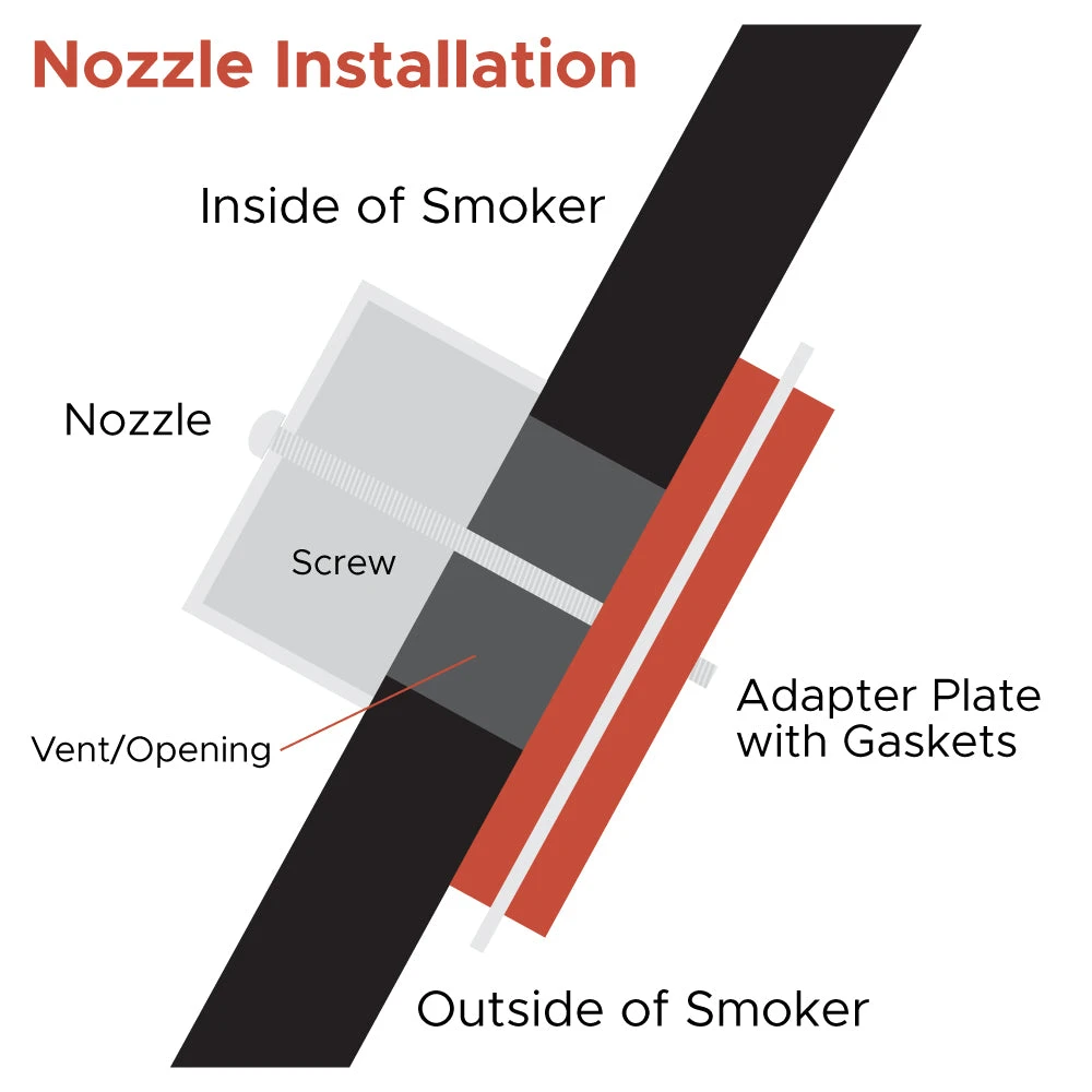 The Blower Nozzle Adapter allows easy installation of the FireBoard Drive Blower on kettle-style grills and smokers. The square nozzle rotates and can redirect airflow in any direction perpendicular to the fan. This is particularly useful in situations where a custom hole is drilled in the side of a grill in order to install a fan to control the fire.