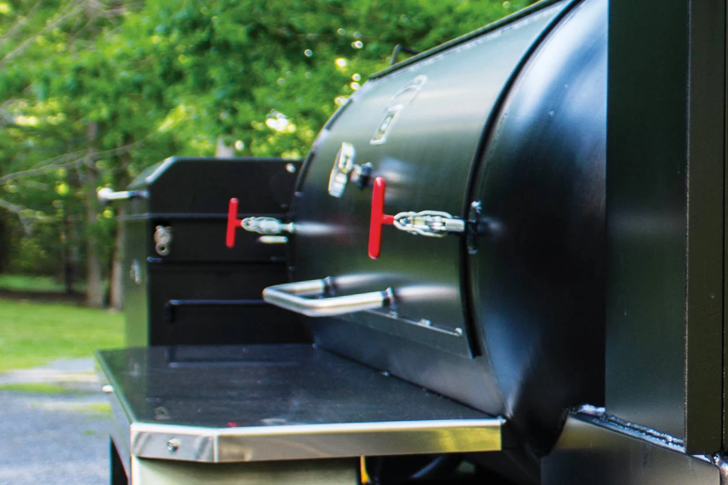 Deck it out with a chicken cooker grill, stainless steel work shelves, insulated firebox, and a trim package, and you’re ready to roll smoke and crank out amazing barbecue for your clients and friends in class!