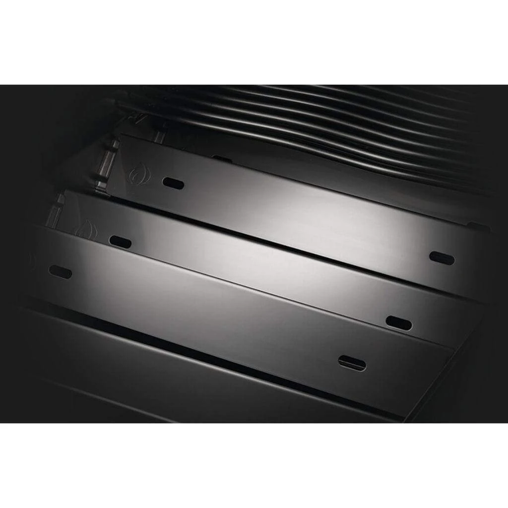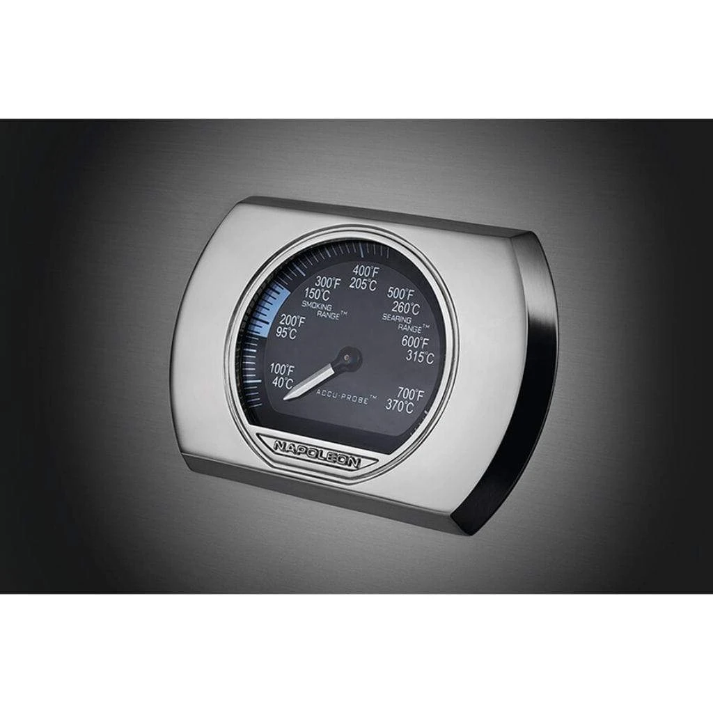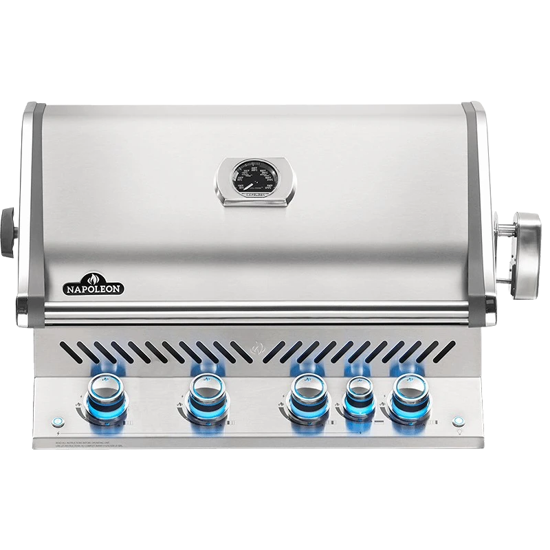 The Napoleon Prestige PRO 500 blends quality and performance into one package and has the features to make every cooking experience exceptional. This built-in natural gas grill has four stainless steel tube burners that provide up to 48,000 BTUs of cooking power. The grill has stainless steel cooking grates with 500 square inches of main cooking area and 260 square inches across the stainless steel warming area for a total of 760 square inches of cooking area. Easily turn the burners on with flame ignition for a reliable start-up. The stainless steel wave cooking grids create the trademark Napoleon sear lines. The stainless steel, self-cleaning sear plates vaporize drippings, control flare-ups, and keep your food moist. The Prestige PRO 500 also has an 18,000 BTU stainless steel rear infrared burner for slow cooking with the rotisserie kit. The hood features an Accu-Probe temperature gauge, stainless steel end caps and retains heat for oven-like performance. The LED Spectrum Night Light control knobs have near limitless color options making your nighttime entertaining a breeze, and they glow red when a burner is in use while two interior lights illuminate the grilling surface. A full-width drip pan also makes clean up a breeze. This Napoleon grill is manufactured in Canada.