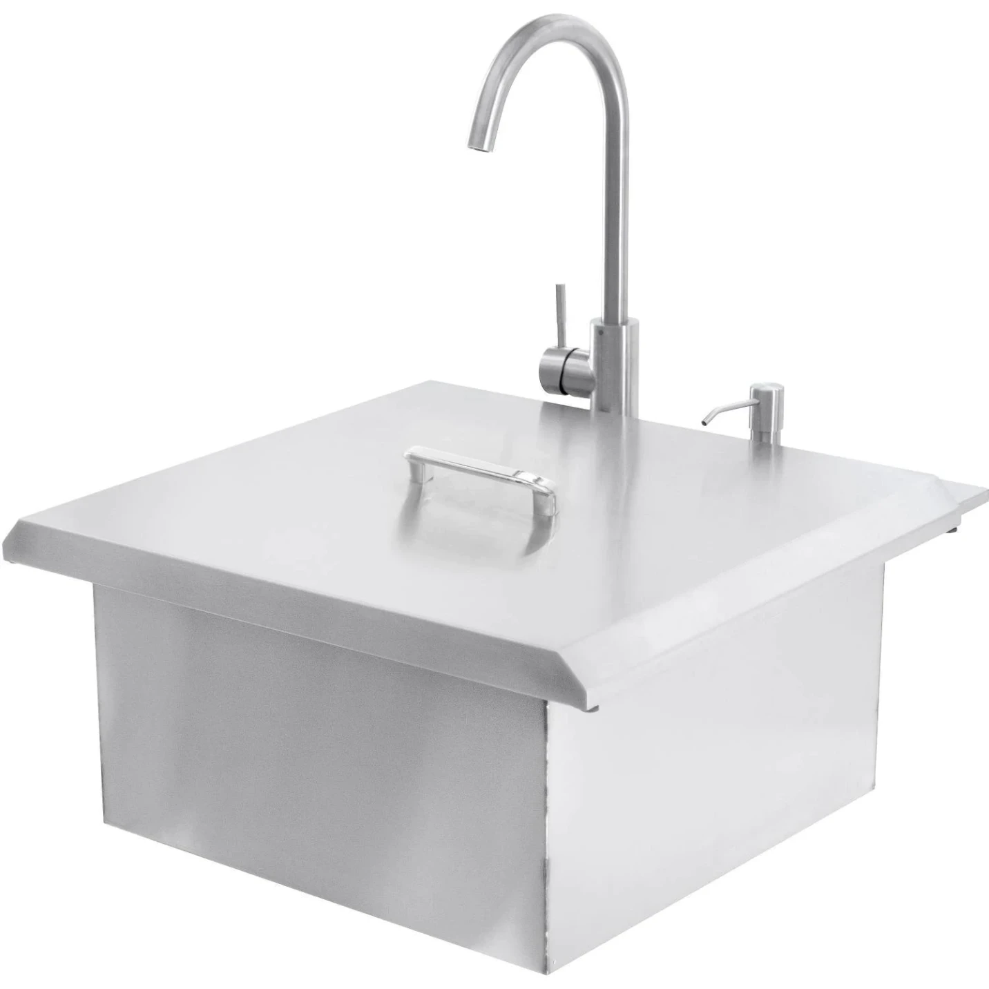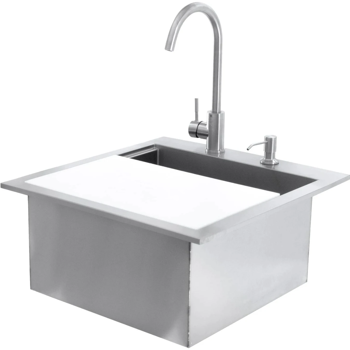 The PCM 260 Series 21-Inch Drop-in Sink is the ideal choice for cleaning and food prep in your outdoor kitchen. Made with 18-gauge, 304 stainless steel, this sink has been built with durability in mind and will match other 304 stainless steel components in your kitchen. The sink features a hot/cold faucet, soap dispenser, and a 10-inch deep basin for washing your hands, tools, or cookware. The included cutting board can be set on top of the sink while leaving a portion of the basin open to catch drippings and trimmings. The large drain is sized to fit most garbage disposals and features a catch basket to keep food and debris from damaging your plumbing.