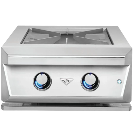 Twin Eagles incomparable over-sized, cast brass, 2-ring Power Burner – rated at 70,000 BTUs – makes all other residential burners jealous with heat envy. Twin Eagles constructed the reversible commercial cooking grate on 8 mm stainless steel welded plates. This accessory should star in every outdoor kitchen.
