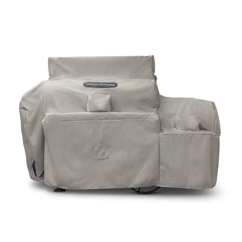 Protect your Yoder Smoker with a custom fit cover! This cover is made of heavy duty, waterproof fabric and will hold up to the elements. It is custom made to cover every piece of the Yoder Smokers Wichita smoker with counterweight – the firebox, cooking chamber, outer shelves, and counterweight. Monogrammed with the Yoder Smokers logo in white, your investment will be protected while also showing your Yoder Smoker pride.